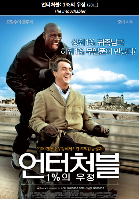 《언터처블: 1%의 우정》은 프랑스에서 실화를 바탕으로 제작된 감동적인 드라마로,