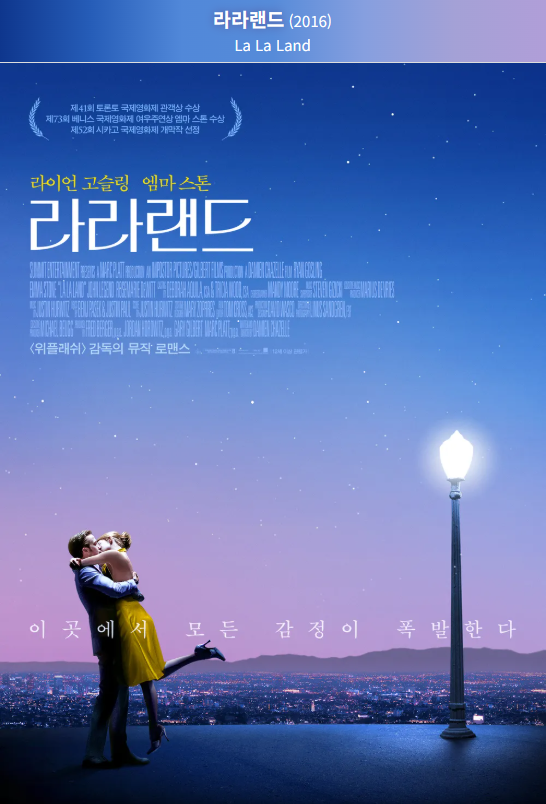 〈라라랜드〉는 꿈을 좇는 모든 이들과, 사랑으로 성장해 가는 모든 이들에게 다정한 위로와 격려를 전해줍니다.