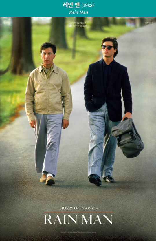 영화 《레인맨(Rain Man)》1988년 영화이며 아카데미 작품상을 받은 감동적인 영화입니다.