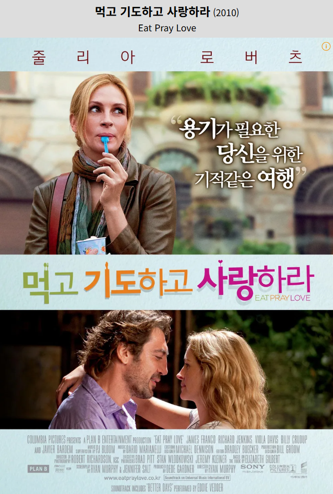 영화 **《먹고 기도하고 사랑하라(Eat Pray Love, 2010)》**는
