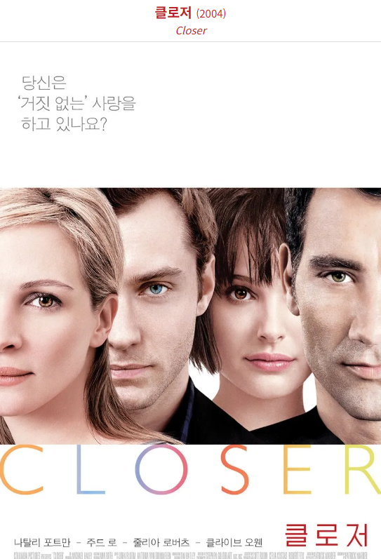 영화 《클로저(Closer, 2004)》는 사랑과 욕망,