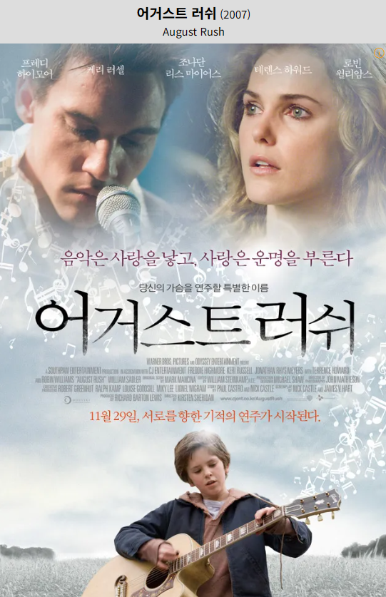 그 소리를 따라 움직이며 점점 ‘어거스트 러쉬’라는 이름을 얻게 됩니다.